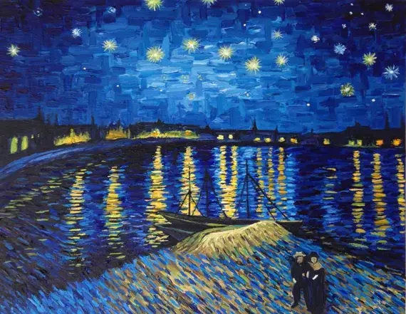 Where its more well-known sibling, The Starry Night, swirls with psychological turbulence, this earlier composition is calm, deliberate, and filled with hope. Van Gogh experimented here with complementary colors—especially blues and yellows—to express harmony through contrast.